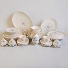All pieces feature the classic atomic starburst pattern with teal and pink accents and silver trim. All pieces have theoriginal Johnson Bros England backstamp (see photo). Cup & Saucer Sets (9 available).