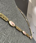 NECKLACE Gold Metal Flowered Links Painted White Rust Enamel Links In Between