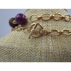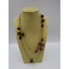 Long Gold tone natural stone, glass and wood beaded necklace.