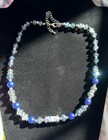 Silver Plated Over Brass Blue Beaded Sodalite & Multifaceted Crystal Necklace