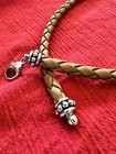 Honora Braided Tan Leather Choker Necklace with White Pearls & - sterling silver