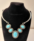 Southwest Style Crackled Look Faux Turquoise Silver Tone Collar Choker Necklace
