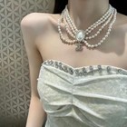 😍CHANEL Pearl Silver Light Pink Four-layer Short CCS Necklace with Rhinestones