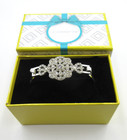 LC LIZ CLAIBORNE silver tone metal Clear Rhinestone Opens hook Bangle Bracelet