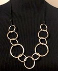 Escape From Paris Uneven Silver Rings Links Adjustable Black Cord Necklace