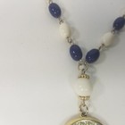 Vintage Blue White Bead Dangle Gold Tone Necklace 24"