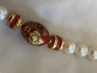 Faux pear necklace with deep red colored flowered beads 27 inch. In almost perfect condition. Compliments almost any outfit especially cream or gold. Perfect accessory for almost any occasion. Ships only in the USA. This deal won't be here for long.