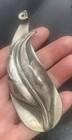 A leaf Arts &Crafts / Art Nouveau leaf style shape which I think is a pendant. It’s metal and shows wear, including plating worn off in areas. Also a metal Crown Knight metal pendant on a metal silver tone chain.