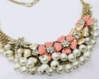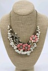 Talbots Pearl Beads Pink Gold Rhinestone Flower Dragonfly Bib Necklace 21 in