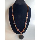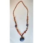 Multicolored African Copal Amber Beaded Necklace Large Circular Pendant Tribal