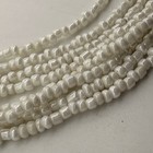 Multiple strands of white seed beads. Layered, draped design for fuller look. Faux pearl accents near clasp.