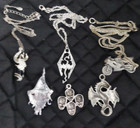 Lot of 6 pewter pendant necklaces featuring a mix of dragon, wizard, skull, and motorcycle designs. Great variety of gothic, fantasy, and biker styles.