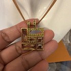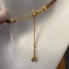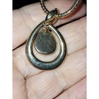The chain on this piece is very silky. It is a snake type chain and in very nice pre-owned condition. The pendant has a brushed gold color for the centerpiece. This is very classic and elegant. This would go with a variety of styles.