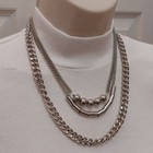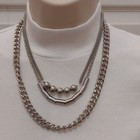 Trendy Chic Triple Strand Layered Silver Tone Necklace