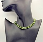This elegant green glass bead necklace features vibrant round beads hand-knotted on silk with polished gold-tone spacer beads. The necklace is finished with a14K gold-filled spring ring clasp, adding a touch of luxury and durability.