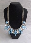 Silver Tone Statement Bib Necklace Powder Blue & Clear Stones 16-18" VGC