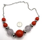 Red Bead Statement Necklace Silver Tone Spacers Faceted Clear Beads 22 in