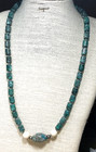 Fashion Necklace Mystery Stone Teal Mottled Barrel Art Glass Center Bead Lot 97A