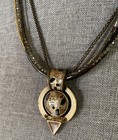 VTG CHICO’S STATEMENT DECO PENDANT NECKLACE SEED BEAD CRYSTALS ANTIQUED GOLDTONE