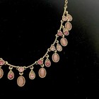 Statement Necklace Pink Crystal Rose Quartz Round Oval Bezel Setting Gold Tone