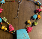 Multi Color Statement Beaded Nugget & Faux Turquoise Silver tone Necklace 15+"