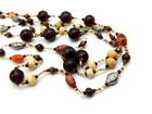 Two-strand beaded necklace in warm autumnal tones featuring mixed natural materials. Includes carved organic beads, carnelian, wood, and glass beads with small metal accents. Materials: Organic material, carnelian, wood, glass, metal Size / Length / Weight: Approx. 31” inner strand, 100 g Clasp / Fastening: Lobster clasp with extender chain Distinctive Features: Mixed bead sizes and finishes, warm earthy colour palette, lightweight layering design Colour / Style Notes: Cream, brown, amber, silver tone accent and rust tones; relaxed boho style