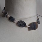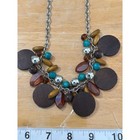 chunky necklace, bib necklace, natural elements, beaded necklace, turquoise accents, silver tone chain, artisanal, unique, statement piece, gift for her, everyday wear, evening accessory, bohemian style
