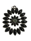 Pendant For Necklace Black Beads Silver Tone Blooming Flower Petals 2.5 “