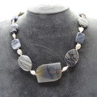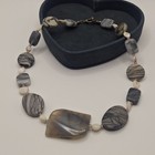 Grey Marble Picasso Jasper Style Necklace Agate Centre Stone T Bar