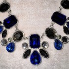 Perfect for dressing up a simple blouse or adding a pop of color to evening wear. The adjustable chain allows for a comfortable fit, making it easy to style at different neckline lengths. • Color: Blue, Gray, Clear Stones.
