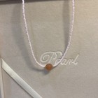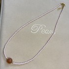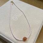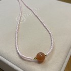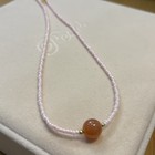 Soft, graceful, and radiant — this necklace features delicate light pink glass beads paired with a warm carnelian gemstone centerpiece and subtle gold-tone accents. • Materials: Pink glass seed beads, natural carnelian gemstone, gold-tone accents.