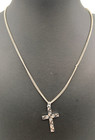 Silver Coloured Cross Pendant Necklaces On 17" Chain d