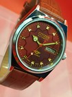 Vintage Red CITIZEN Automatic211 Jewels Day/Date Japan Men's Wrist Watch vb