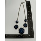 Blue Statement Necklace Silver Tone Faceted Disc Rhinestone Accents