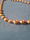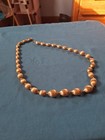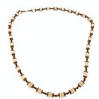 This vintage brush gold tone necklace features a series of elegant beans in various sizes, from small to large, creating a timeless and fashionable look. The snap closure makes it easy to wear for special occasions like Christmas, anniversaries, birthdays, christenings, and confirmation/communion. With a necklace length of 24 inches, this beaded piece adds a touch of classic style to any outfit.