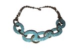 Turquoise Colored Beads And Gold Toned Chain Necklace