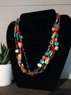 NECKLACE 3 Strands Gold/Orange/White Layered Beads, 14.5 inches See Photos