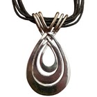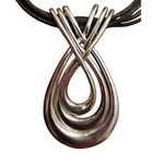 Pianegonda Pendant Black Leather Cord Necklace Sterling Silver