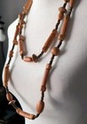 Wooden Bead Necklace Tube Ball Boho Ethnic Rolling Disc Exotic Wood. • Style: Boho / artisan / tribal / earthy. Beautiful long boho-style wooden bead necklace featuring an earthy mix of carved wood beads in varied shapes and tones.