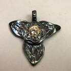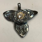 Layered Dark Metallic Clay Pendant Rhinestone Center Textured Dark Hand Made