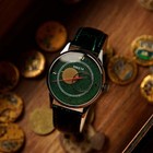 Soviet Vintage Raketa Copernicus Green Dial Watch for Men, Leather Strap
