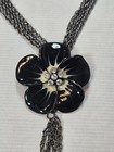 Chunky black flower pendant with multistranded chains necklace. Used in good condition. Please check out my other items, I accept reasonable offers and I'm happy to combine postage. I send 2nd class tracked unless arranged before bidding ends. I do post internationally through the Global Shipping Programme, but you are unable to combine postage. My photos are part of my description and will show any faults with the item. Any questions please ask, I will reply to messages as quickly as possible.