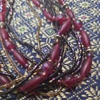 Preloved statement Deep Red and Gold Tones Small Beaded Necklace, Multi Strand