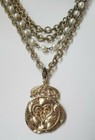 Gold Tone Imitation Pearls Layered Necklace Stamped Heart Pendant