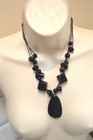Black Bead Necklace with Teardrop Pendant on Corded Chain – 43cm