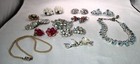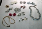 Vintage Rhinestone Bling Costume Jewelry Necklace Earrings Brooches Lot K1005