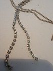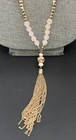 NY Gold Tone NECKLACE with Clear Pink Gold Beads Chain Tassel With Rhinestone