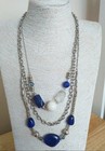 Beautiful lucite necklace with large smooth, facets, oval and cube beads. Lobster clasp. No marking. Very good, near excellent condition. Striking Silver-tone and acrylic multi chain necklace.