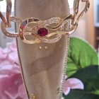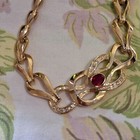 Stunning statement necklace with faux ruby & diamond stones, in gold tone