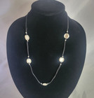 Silver necklace with white pearl and black diamonds